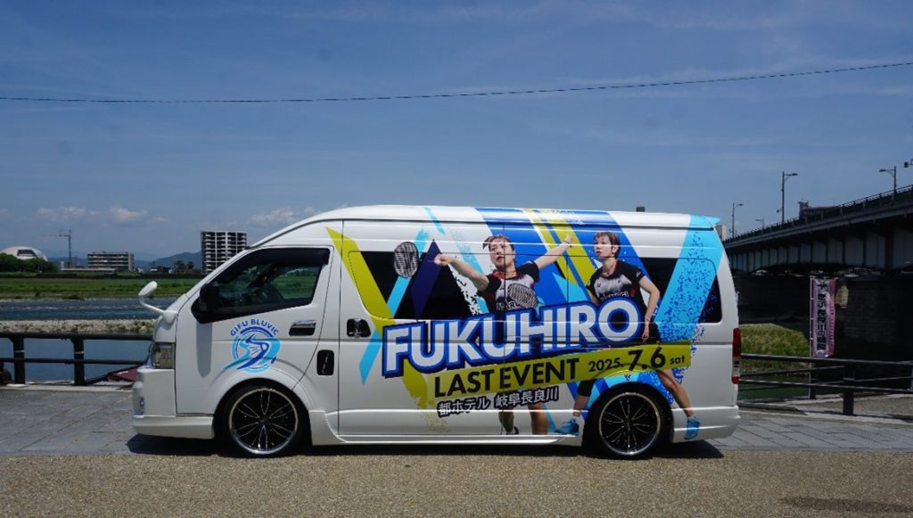 第一弾となるラッピングは、2025年7月6日(日)に開催する「フクヒロラストイベント」専用仕様。数々の感動をもたらしてくれた福島・廣田ペアへの感謝を込めた特別デザインです。当日は、VIPプランでご来場の皆様の送迎車両としても活躍します。